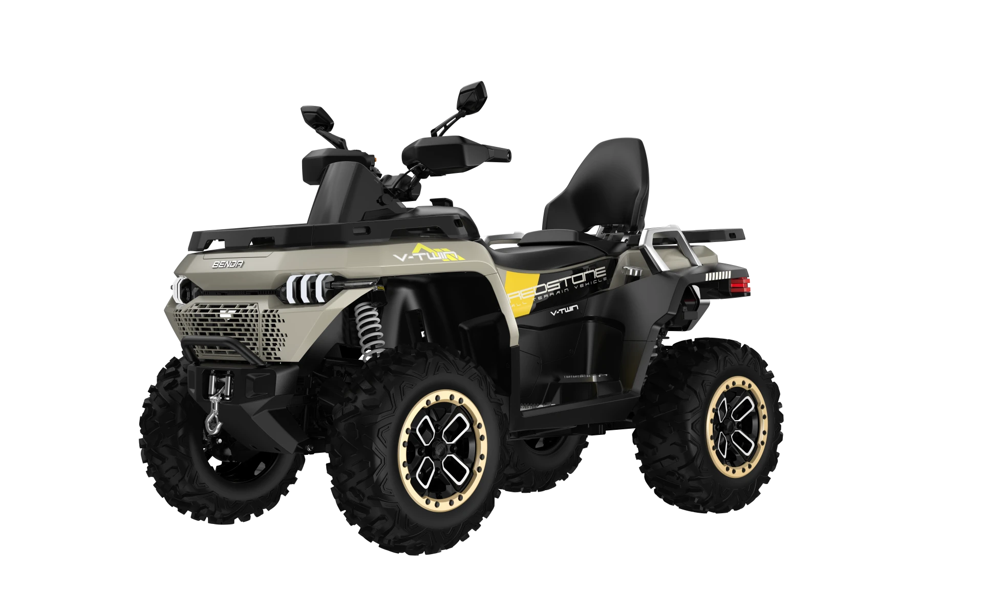 Pro ty, kdo chtějí absolutní špičku, je tady prémiový model. Získáš 14" hliníkové ráfky s Beadlock systémem, který zabraňuje uvolnění pneumatiky v extrémních podmínkách. Nylonové lano u navijáku (3500 lb) je lehčí a bezpečnější než ocelové. Start jedním tlačítkem ti ušetří čas a zpříjemní startování. Samozřejmostí jsou TFT displej, 26" pneumatiky Wanda, plynové tlumiče, zadní uzávěrka diferenciálu, elektronický plyn, motorová brzda a mechanická parkovací brzda. Tento model je určen pro náročné terény, profesionální použití i opravdové dobrodruhy.